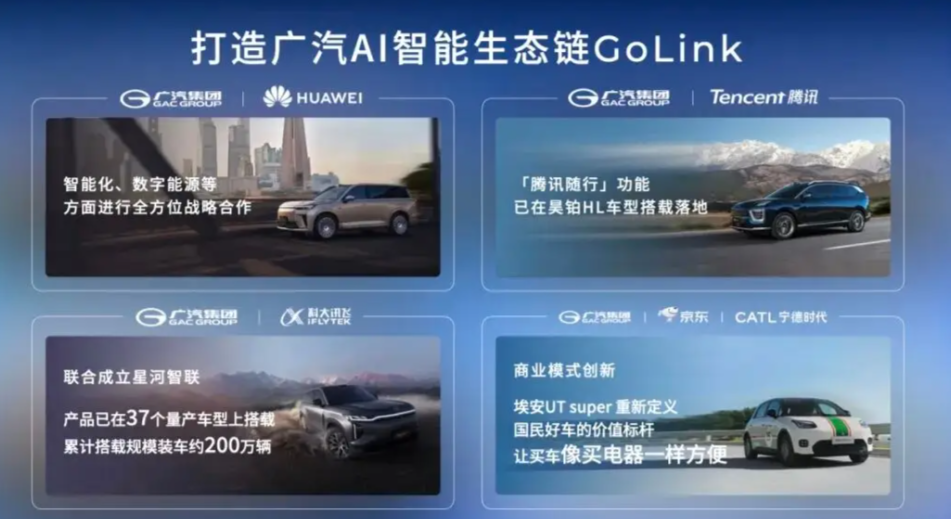 这里值得一提的是GoLink。2025年广汽联合华为、腾讯、京东、宁德时代、科大讯飞、阿里云等企业,构建的AI智能生态链GoLink,它的亮点在于跳脱了传统线性供应链逻辑,转向多边协同、深度共创的生态网络。这无疑是颠覆性的。