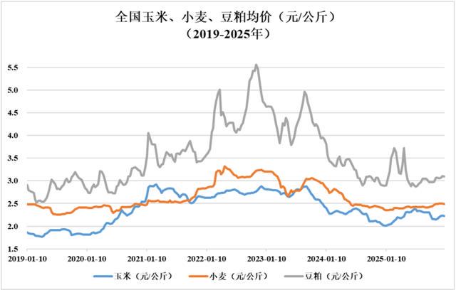但是这里面很大一个原因是饲料成本下降的功能,饲料占了总成本的55%~65%,主要是玉米、小麦和豆粕。