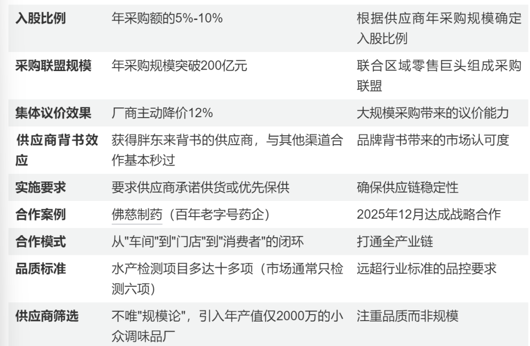 胖东来采取“现结”方式,极大减轻供应商资金压力,但需通严格的资质与质检报告审核。根据今日头条报道,胖东来创新采用 “阶梯式入股绑定” ,按年采购额的5%-10% 比例参股核心供应商,要求其承诺优先保供,将供应关系升级为利益共生体。