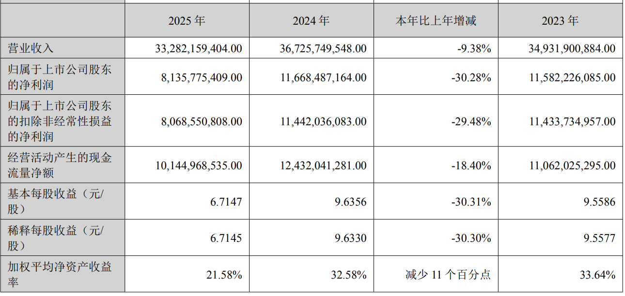 近期,迈瑞医疗发布了2025年财报。财报显示,2025年实现营业收入332.82亿元,同比下降9.38%;实现净利润81.36亿元,同比下降30.28%;扣非净利润为80.69亿元,同比下滑29.48%;毛利率为60.32%,同比轻微下滑。
