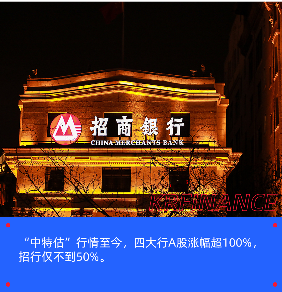 至目前(截至3月27日)四大行A股涨幅均超过100%,而招商银行涨幅不到50%。
