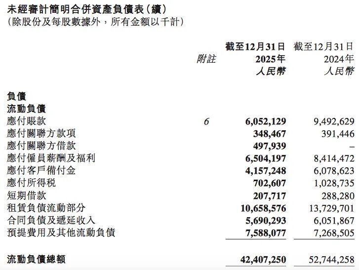 财报显示,2025年运营费用总额同比减少5.6%至181亿元,其中,一般及行政费用同比减少9.9%至81亿元,主要由于股份支付薪酬费用及信用损失准备减少;销售和市场费用同比减少5.8%至73亿元,主要由于公司的成本优化举措,包括人工成本的降低及广告及推广费用的减少;研发费用同比增长13.0%至26亿元,主要由于增加的人力成本;2025年商誉、无形资产及其他长期资产减值为1.16亿元,上年同期为1.52亿元,主要由于市场波动及其对营运的影响而引发的商誉减值。