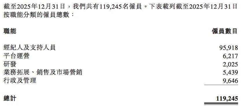 为控制成本、提升效能,贝壳实施人员优化,2025年全年雇员从13.51万人减至11.92万人,减少1.58万人,降幅12%。根据财报,2025年贝壳应付员工薪酬及福利较上年同比减少19.1亿元。