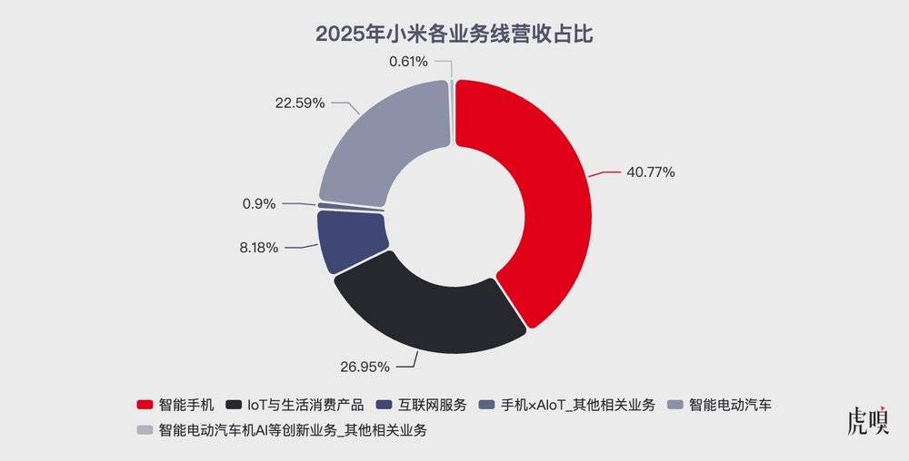 年报也同时体现了这种变化。2025年,小米智能电动汽车及AI等创新业务营收达到1061亿元,同比增长223.8%;IoT与生活消费产品营收也增长至1041亿元。无论是汽车、智能家电,还是AI研发投入,管理层都在努力证明,小米已经不再是一家单一依赖手机的公司。