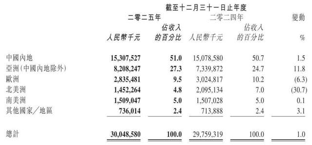 从全球市场来看,2025年,奥克斯电气在中国内地的收入仅小幅增长1.5%,在欧洲收入则同比下滑6.3%,北美洲收入更是同比暴跌30.7%,南美洲仅同比微增0.1%。
