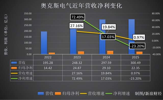 3月27日,奥克斯电气发布了挂牌上市后的首份年度财报,期内总收入约300.48亿元,同比微增0.97% ;母公司拥有人应占净利润22.35亿元,同比骤降23.2%;上市之前,奥克斯的营收和利润皆呈现高歌猛进之势,上市首年却迎来了营收停滞与净利润暴降的严峻挑战。