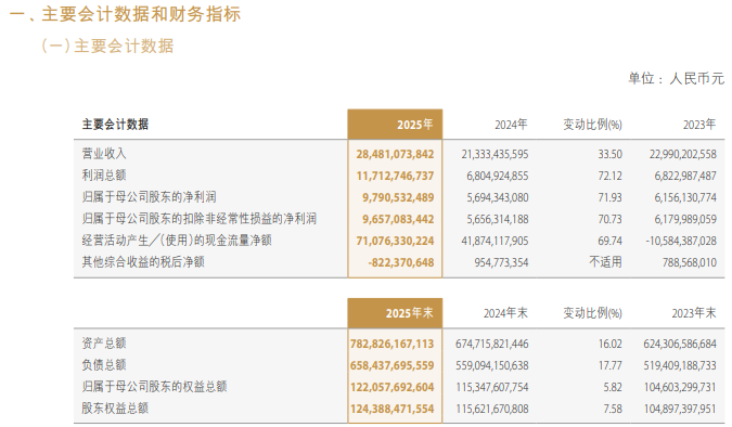 近日,中金公司发布《2025年年度报告》显示,2025年,公司实现营业收入284.81亿元,同比增加33.5%;实现归属于母公司股东的净利润(下称“净利润”)97.91亿元,同比更是大幅增加逾70%,达到71.93%。