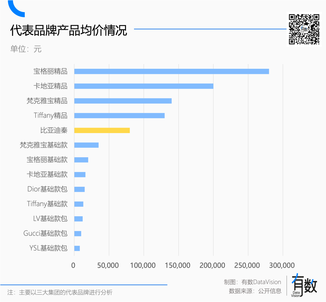 当然,这种高定珠宝本身脱离了奢侈品的语境,其定位更接近“收藏品”的范畴,买回来当传家宝的。但即便在相对“大众”的领域,珠宝的均价也远高于箱包。