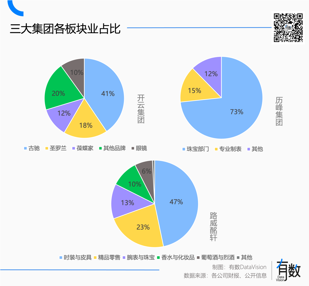 LVMH一直是三大集团中的带头大哥,营收长期超过历峰和开云的总和,旗下品牌最丰富,业务结构也最复杂。