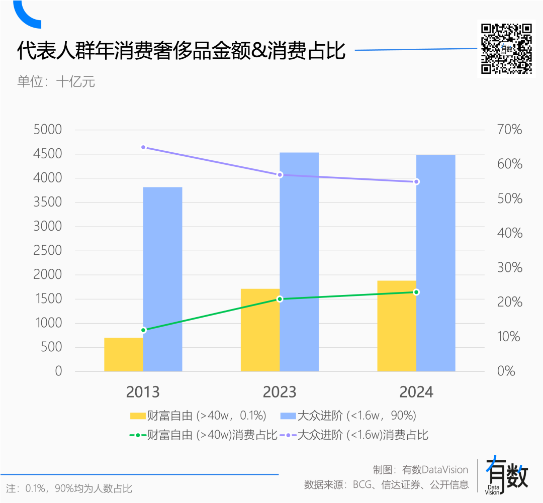 也就是说,决定奢侈品行业景气度的核心权重,在持续从大众群体向0.1%群体迁移。