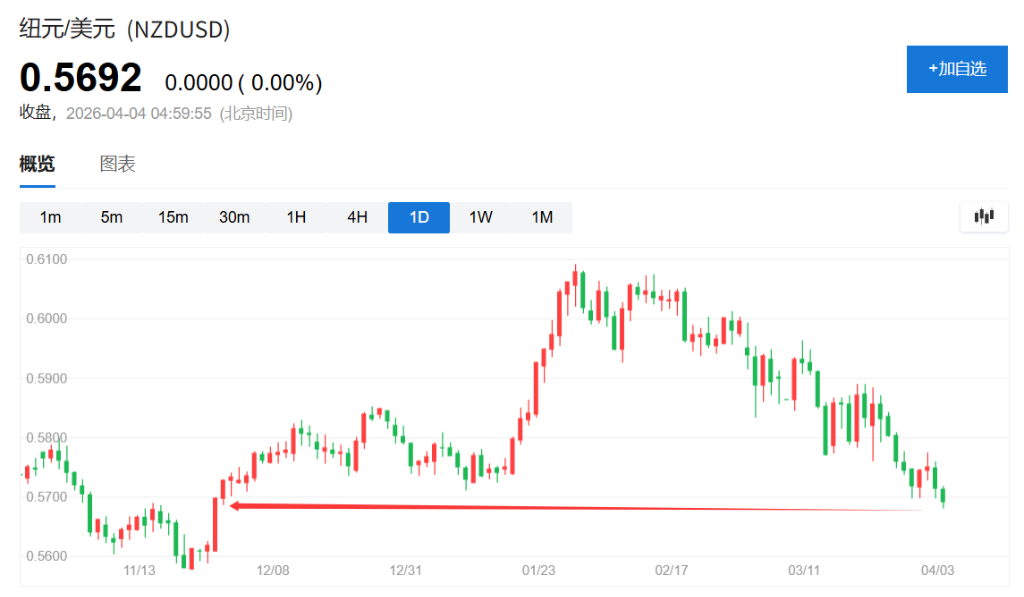 纽约尾盘,纽元兑美元日内跌幅达0.5%,创年内新低。