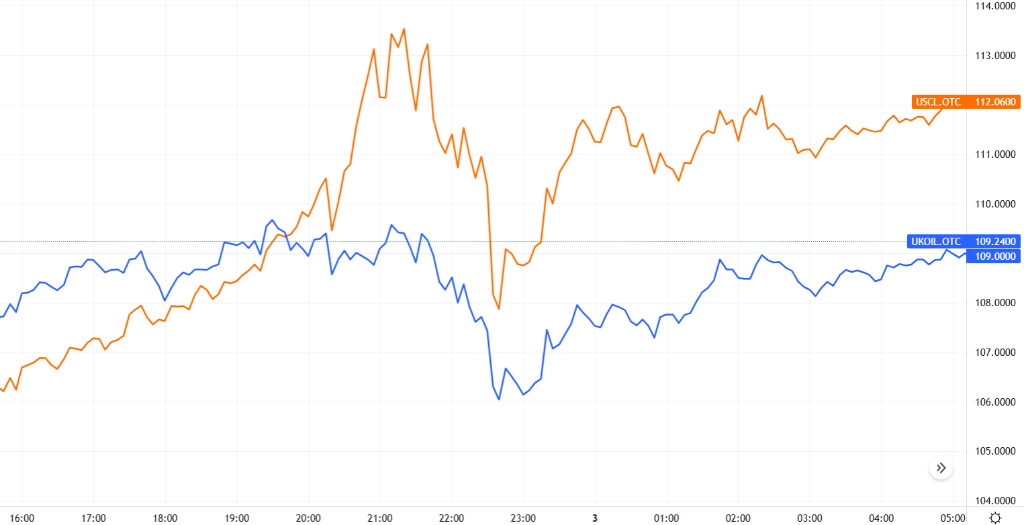 周五因假期休市,原油市场闭市。周四油价收盘维持极高水平,WTI原油报超110美元,布伦特近109美元的高位。