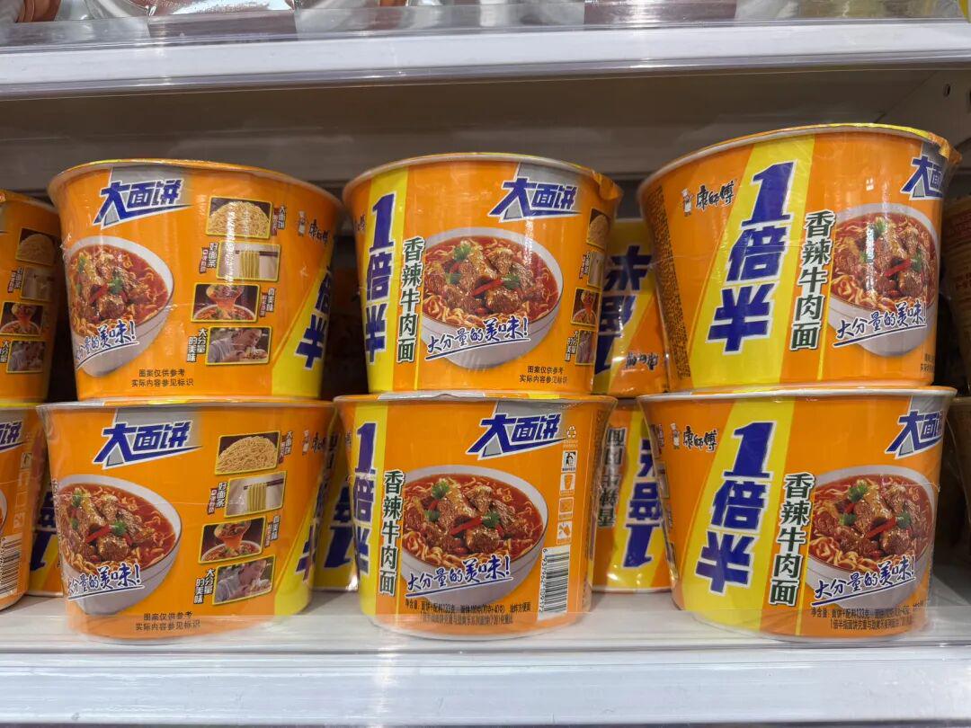 在分量误导方面,2025年6月,白象“多半袋”方便面因标注问题引发舆情,消费者普遍认为“多半袋”意味着分量增加50%,但实际核查显示,普通面饼85克左右,多半产品为110克,仅增加25克,增幅约30%,未达到消费者预期。记者了解到,白象此前曾申请“多半袋”“多半桶”商标,但被商标局驳回,最终仅成功注册“多半”二字,再通过包装组合使用,使得消费者产生认知偏差。与此同时,市场上类似通过“1倍半”“大食袋”“1袋半”等宣传语暗示“量大”的方便面产品并不鲜见。