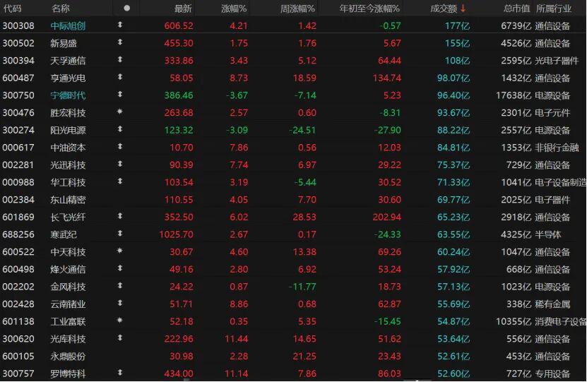 盘面上,光通信模块、光电子器件走强,电子设备制造、电子元件微涨,但电源设备、麒麟电池、燃气、微盘股均大跌。