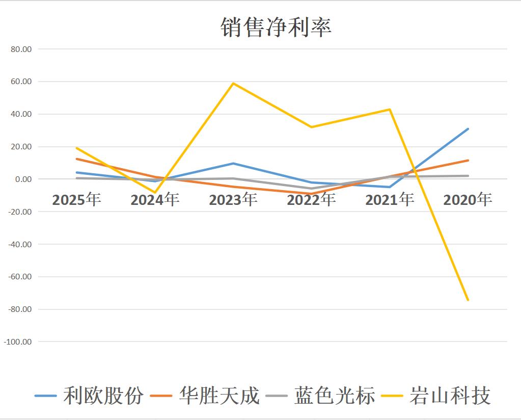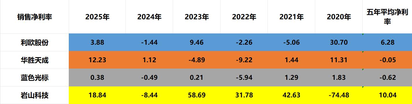 最新三季度盈利能力:岩山科技>华胜天成>利欧股份>蓝色光标