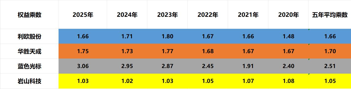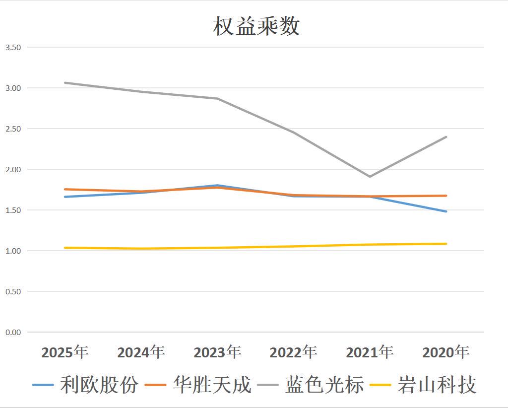 最新三季度财务杠杆:蓝色光标>华胜天成>利欧股份>岩山科技