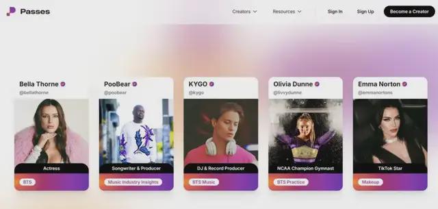 2022年,她亲自下场推出订阅制平台Passes,集直播、一对一通话、线上商店于一体,帮创作者通过付费聊天、视频等方式深度变现。