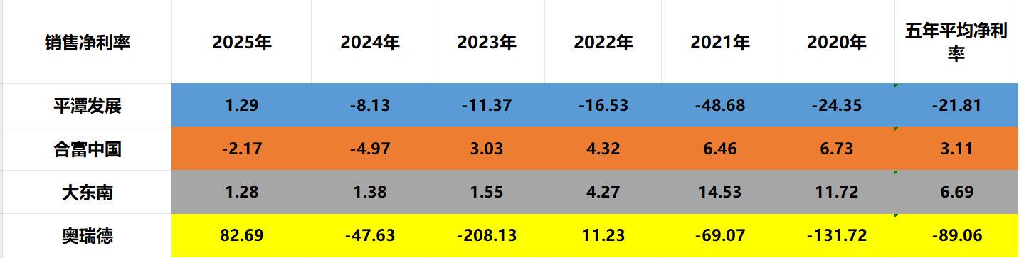 最新三季度盈利能力:奥瑞德>平潭发展>大东南>合富中国