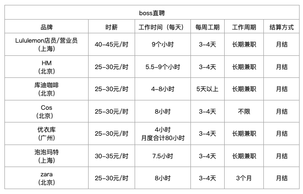 很多品牌 时薪都擦边最低工资线。