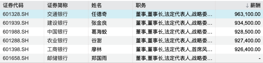 国有银行高管薪酬总额均下滑