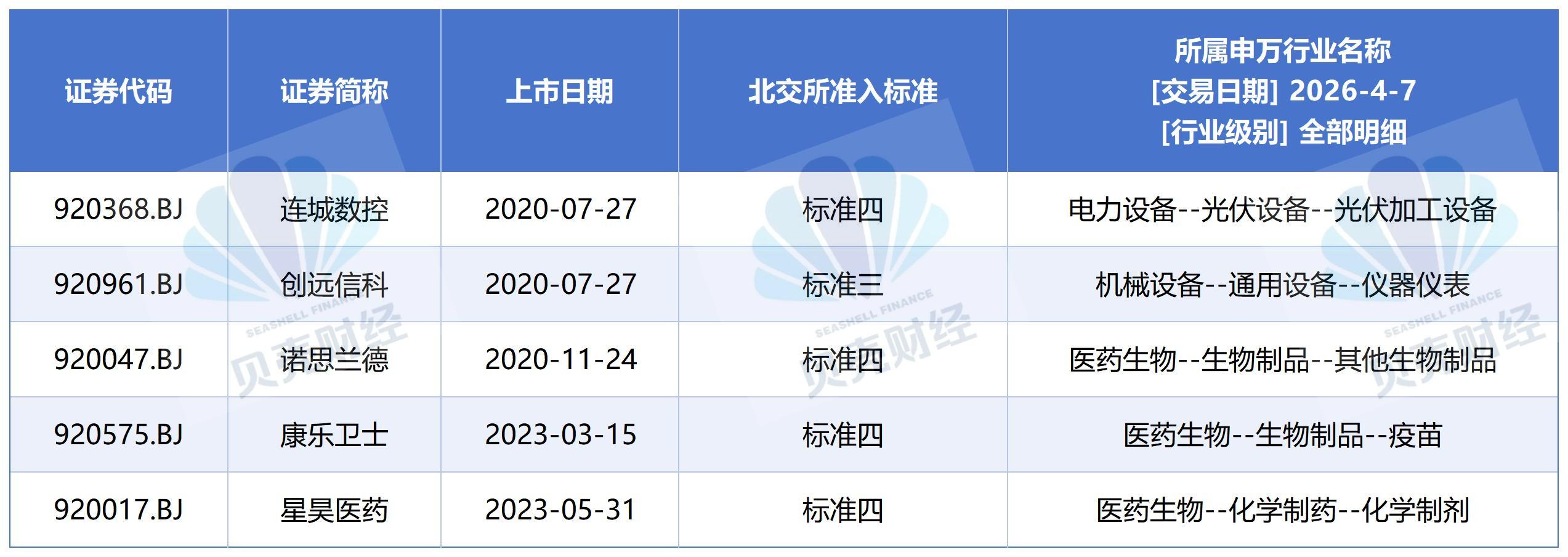 但是从目前情况看,截至4月7日,在303家北交所公司中,仅有5家(其中3家属于医药生物行业)采用了第三套或第四套标准登陆北交所,占比仅为1.65%。