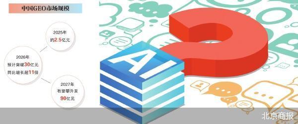 从行业规模来看,GEO市场正处于爆发式增长阶段。中邮证券引用机构统计数据称,2025年中国GEO市场规模约2.5亿元,2026年预计突破30亿元,同比增长超11倍,2027年有望攀升至90亿元。中邮证券研报指出,GEO推动营销行业从资源与返点驱动,转向内容与智能驱动,行业竞争门槛持续提升。