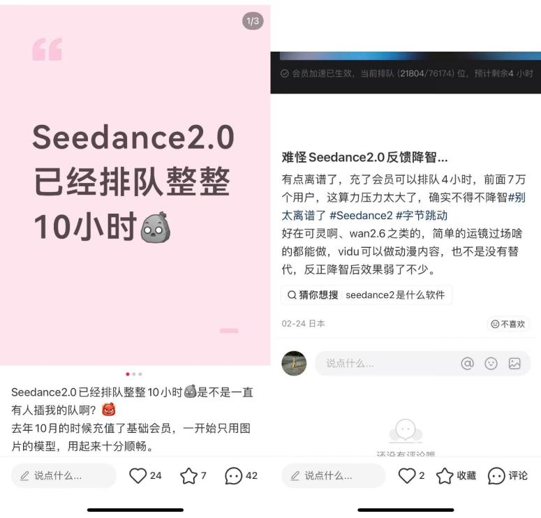 但“好用”背后,庞大的用户需求也让服务器不堪重负,不少内容创作者表示,Seedance2.0的排队等待时间长达8-10小时。