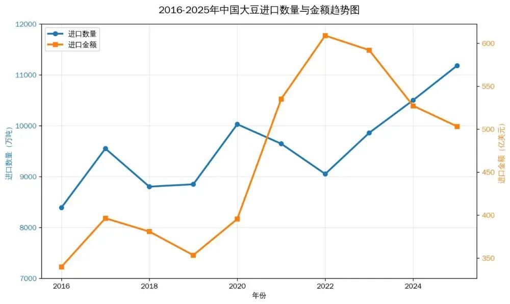 然而现实依旧严峻:2025年,中国大豆进口量再创新高,达到11183万吨,较十年前增长33.3%。