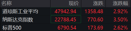 4月8日,美股三大指数大幅高开,纳指涨3.50%,标普500指数涨2.62%,道指涨2.92%。