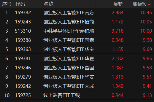 创业板人工智能指数的前10持仓股就是重仓的光模块龙头,今天新易盛涨 9.33%、中际旭创 11.07%、天孚通信 6.19%,从而带动创业板人工智能ETF大涨。