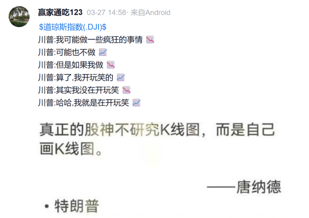 不仅是分析师,也有投资者吐槽表示,最近中东冲突,自己在二级市场里交“军费”。甚至有出现了川普自己画K线的段子。