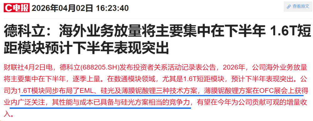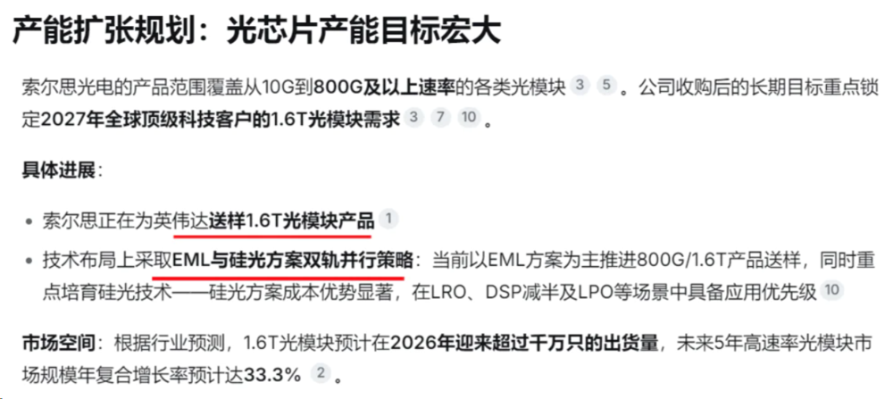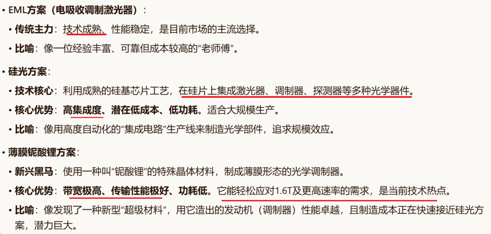 关于薄膜铌酸锂(TFLN)产品,该技术已论证五六年,当前受益于算力需求增长,产业化时机日趋成熟,TFLN生产制造良率日趋稳定,产业链相关公司及供应商已开始进行产能布局。公司在400G、800G及1.6T光模块上同步推出薄膜铌酸锂方案(TFLN)产品。未来薄膜铌酸锂方案将与传统模块及硅光方案并行发展。