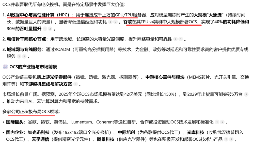 公司OCS产品的进展、技术路线特点及未来规划如何?