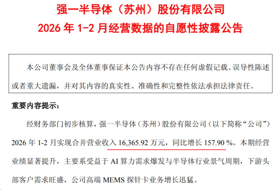 强一股份聚焦晶圆测试核心硬件探针卡的研发、设计、生产与销售。据悉,公司的探针卡主要用于半导体晶圆测试环节,属于后道测试中的关键耗材。在业内人士看来,强一股份的业绩暴增,也间接验证了半导体,尤其是芯片测试产业的高景气。