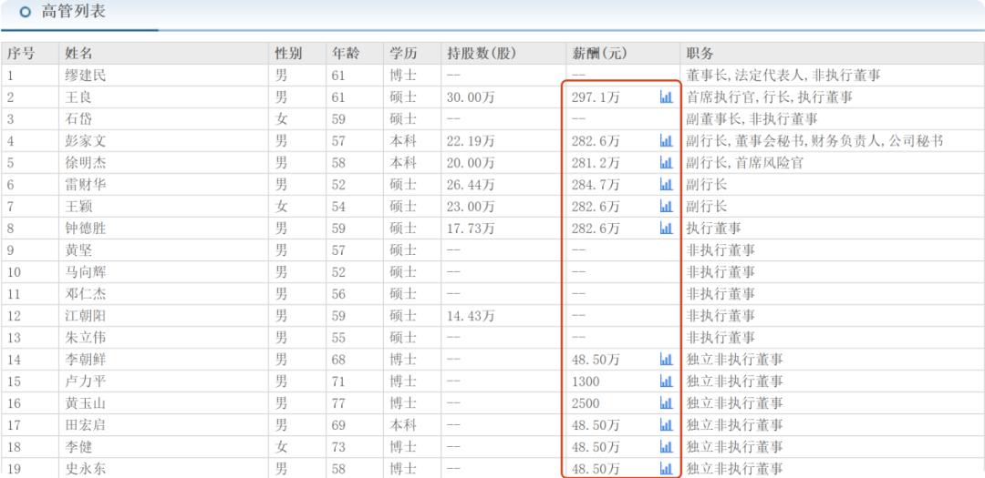▲ 部分上市银行高管薪酬对比(来源:各行年报,编辑部整理)