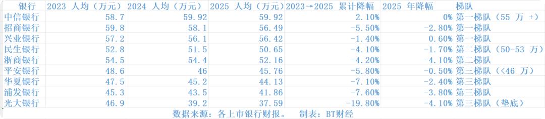 近三年招行人均薪酬降幅约5.5%,在主要股份行中降幅最大,也因此将"薪酬第一"的位置拱手让给了中信银行。