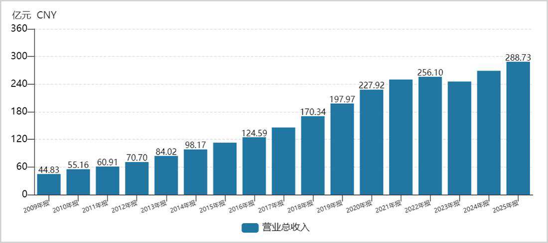 2025年,海天味业营收为288.7亿元,同比增长7.3%。归母净利润为70.4亿元,同比增长约11%。两项核心经营数据均刷新历史新高,延续了2024年以来的复苏势头。