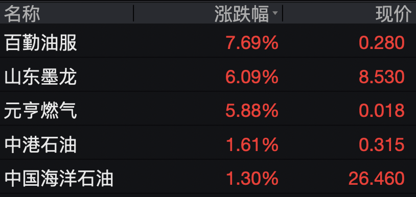 石油石化股逆市走高,百勤油服涨超7%,山东墨龙涨超6%。