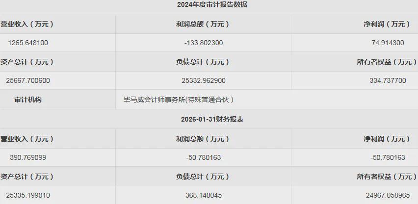 从公告披露看,香港金融交易及服务有限公司2024年经审计后实现营收1265.65万元,总利润亏损133.8万元,净利润74.9万元,去年业绩暂未披露,但今年一月实现营收390.77万元,总利润和净利润均亏损了50.78万元。