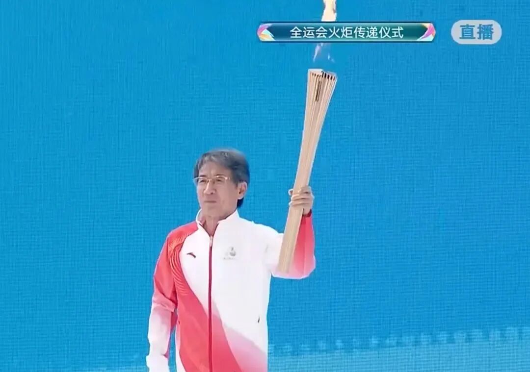 新华社快讯:十五运会第一棒火炬手薛其坤在深圳手持火炬起跑。