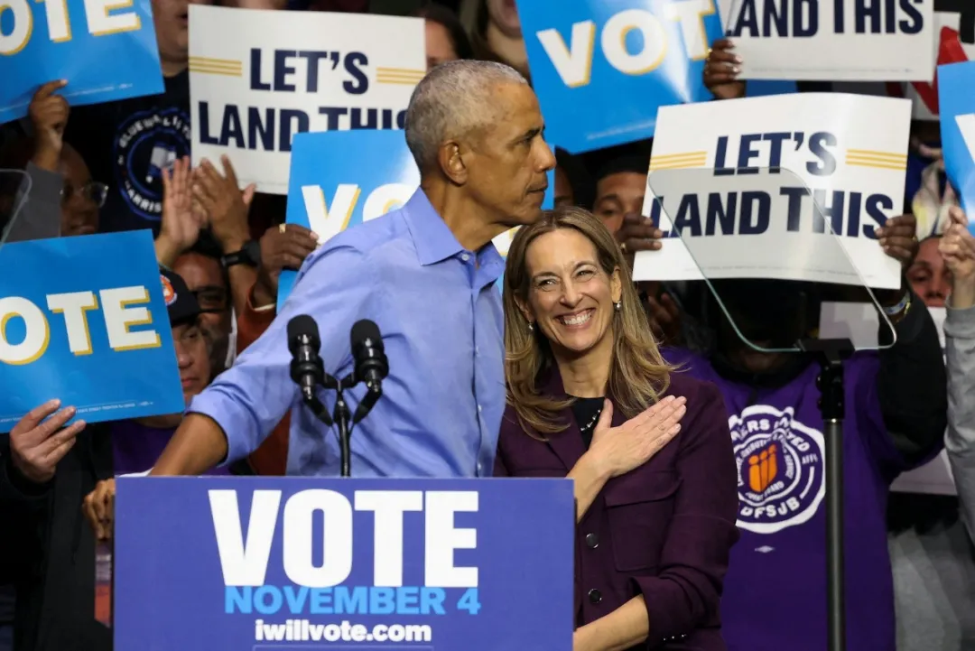 2025年11月1日,美国前总统奥巴马在新泽西州民主党州长候选人谢里尔 (Mikie Sherrill) 的竞选集会上发表讲话。