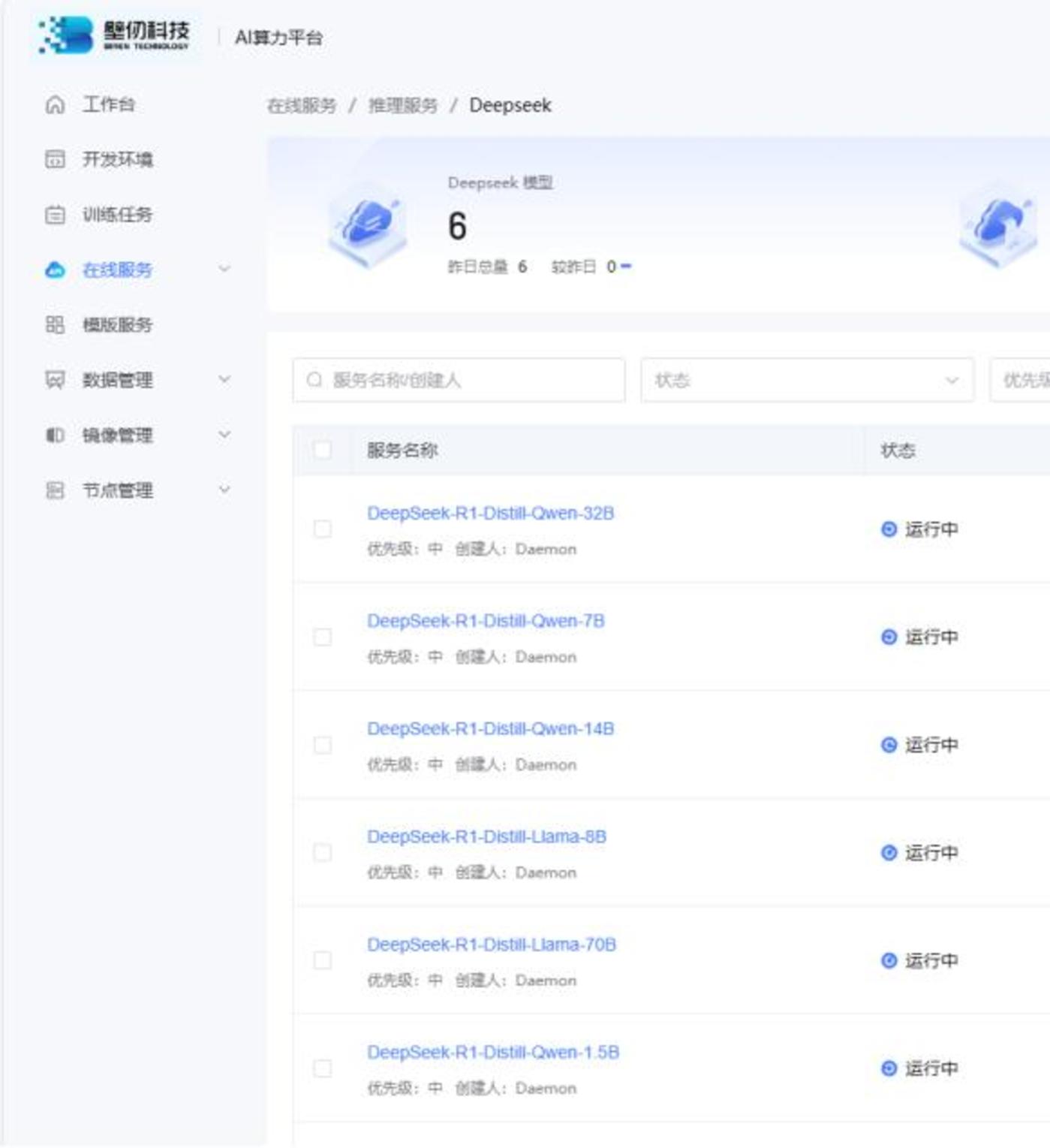 DeepSeek-R1-Distill-Qwen-7B在内的多款大模型服务,为人工智能应用的创新发展提供了强有力的技术支撑和自动可控的算力设施保障。