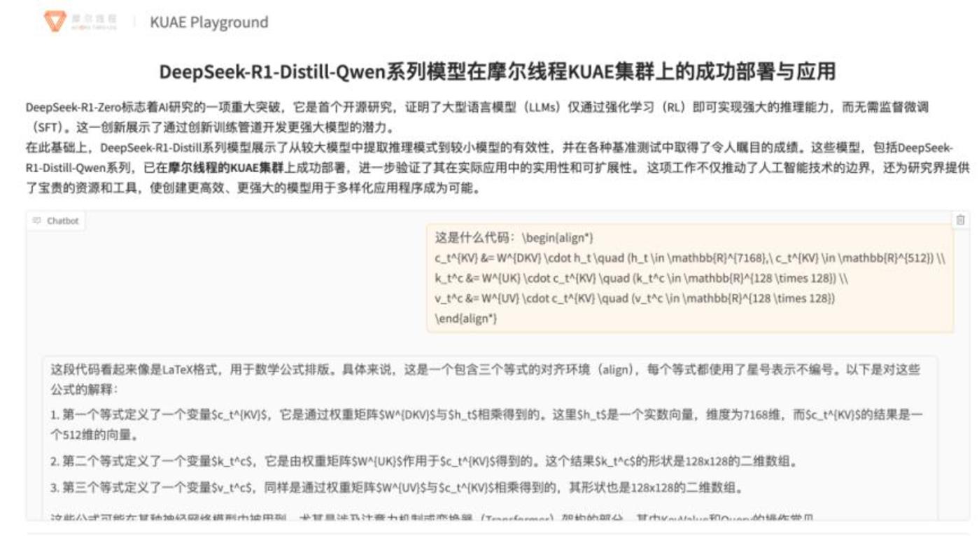 通过DeepSeek提供的蒸馏模型,能够将大规模模型的能力迁移至更小、更高效的版本,在国产GPU上实现高性能推理。摩尔线程基于自研全功能GPU,通过开源与自研双引擎方案,快速实现了对DeepSeek蒸馏模型的推理服务部署,为用户和社区提供高质量服务。