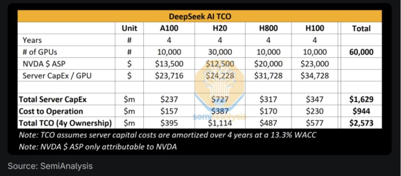 据SemiAnalysis评估,DeepSeek拥有大约50,000个Hopper架构的GPU,其中包括10,000个H800和10,000个H100型号。此外,他们还订购了大量的H20型号GPU,这些GPU专为中国市场设计。尽管H800与H100具有相同的计算能力,但其网络带宽较低。H20是当前唯一对中国模型提供商可用的型号。这些GPU不仅用于DeepSeek,也服务于High-Flyer,地理上分散部署,支持交易、推理、训练和研究等多种任务。