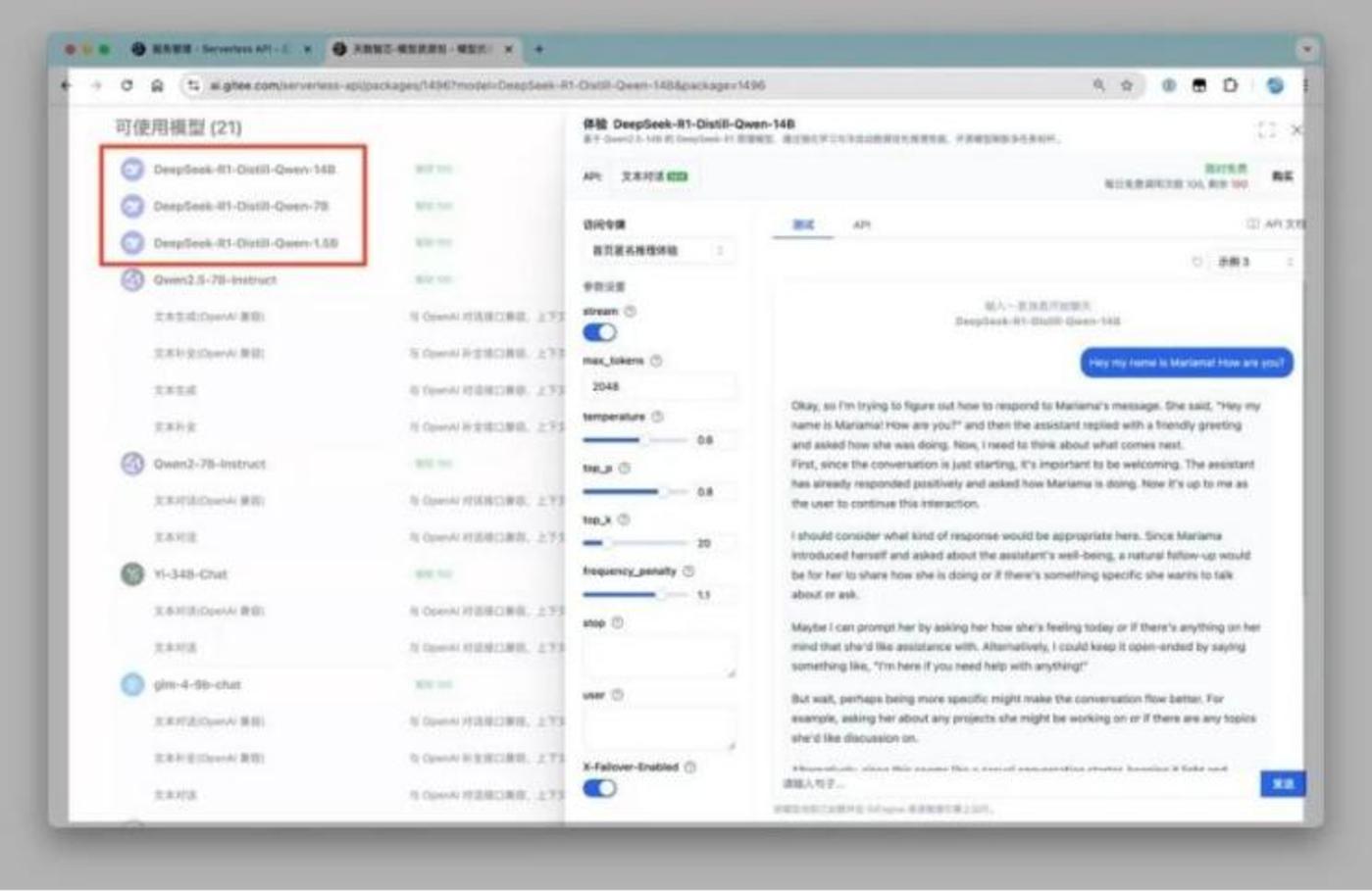 DeepSeek-R1-Distill-Qwen-7B在内的多款大模型服务。