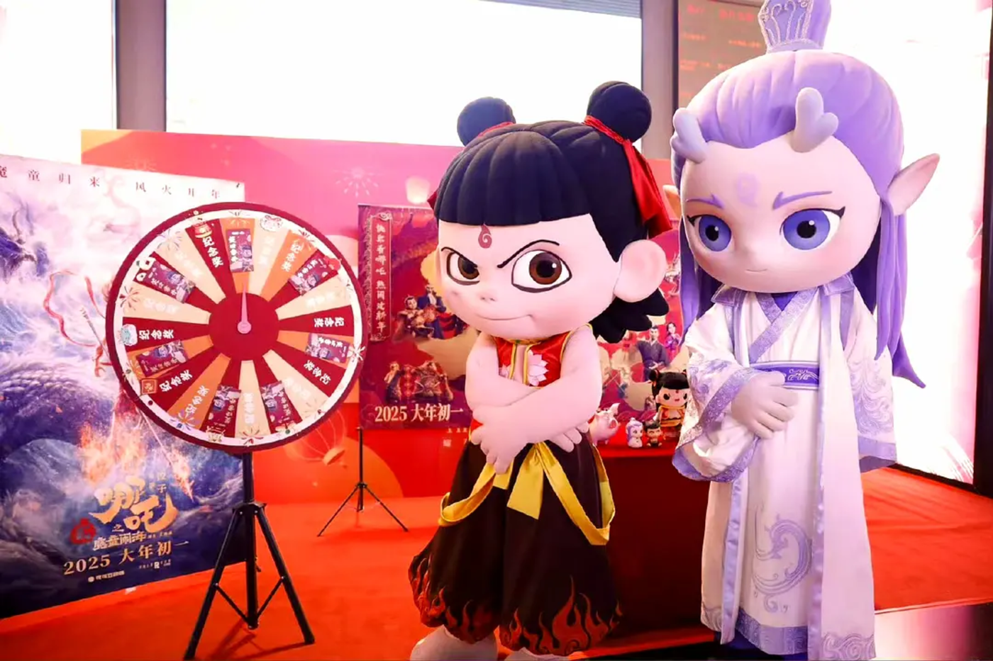 1月11日,「藕饼CP」哪吒、敖丙人偶在微博之夜活动的初登场,以及之后在春晚、小红书和抖音直播的亮相,进一步吸引来一波路人缘。路人对人偶形象的好感离不开近几年玲娜贝儿和labubu的成功案例,从这一细节也可以感受到彩条屋在宣发等环节上开始有更多IP思路。
