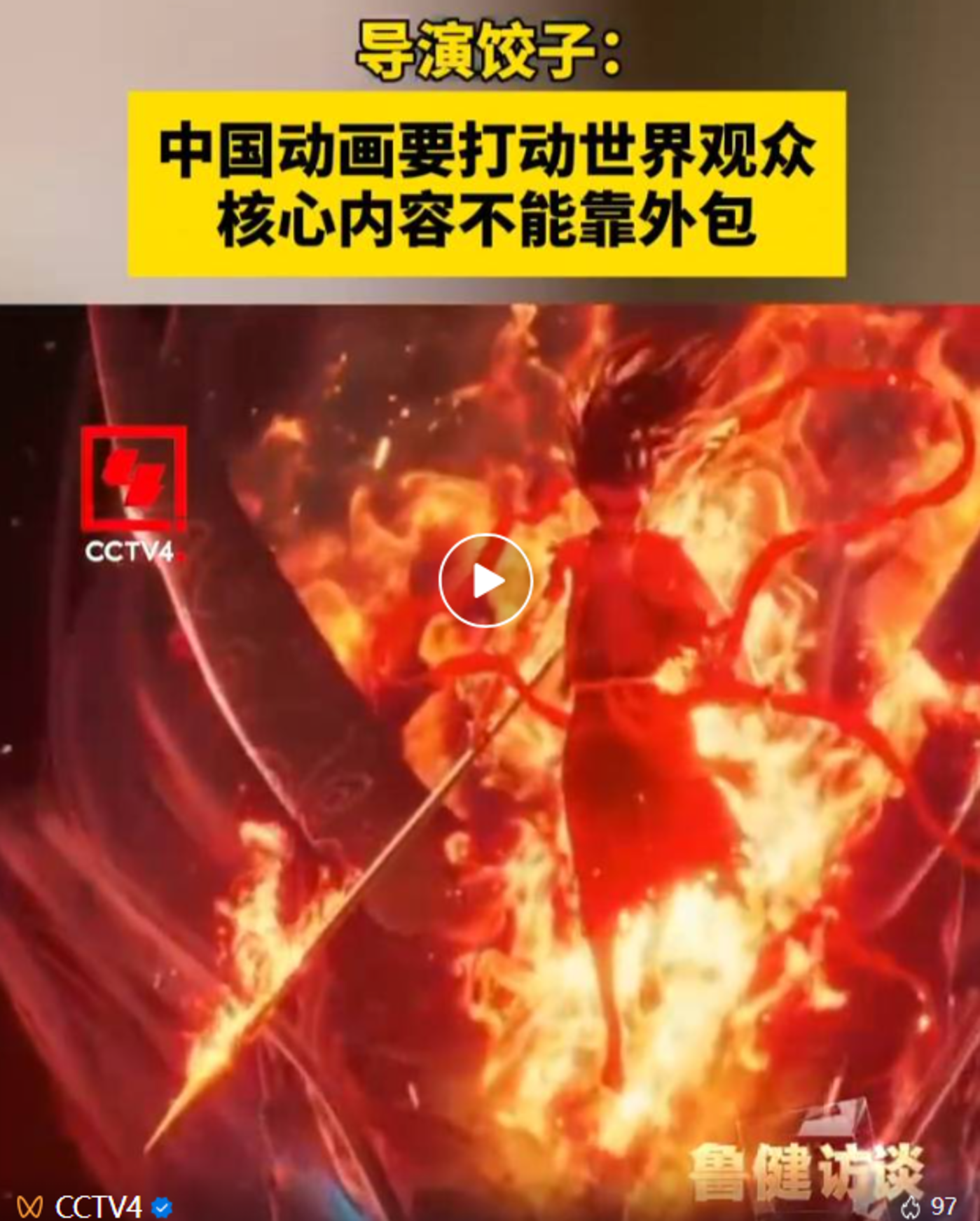 1月31日,在接受央视采访时,饺子提到,《哪吒2》最初曾找到国外顶级视效团队,但最终还是选择和国内团队用心打磨。这段采访成为初期被传播最广的内容之一,国产动画行业的负重前行开始在大众层面被看到。观众们开始热衷于辨别《哪吒2》当中有哪些动画团队的身影,「支持国产动画」「共同托举」的心态也在鼓励更多人走进、甚至反复走进电影院。