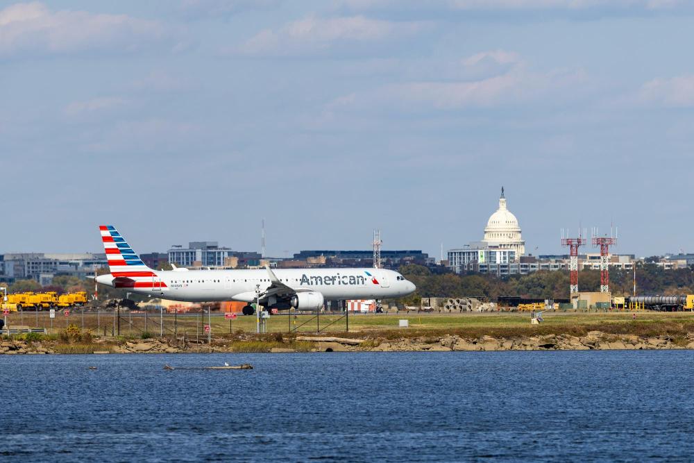 11月1日,一架飞机在美国弗吉尼亚州阿灵顿的里根国家机场滑行。新华社记者胡友松摄