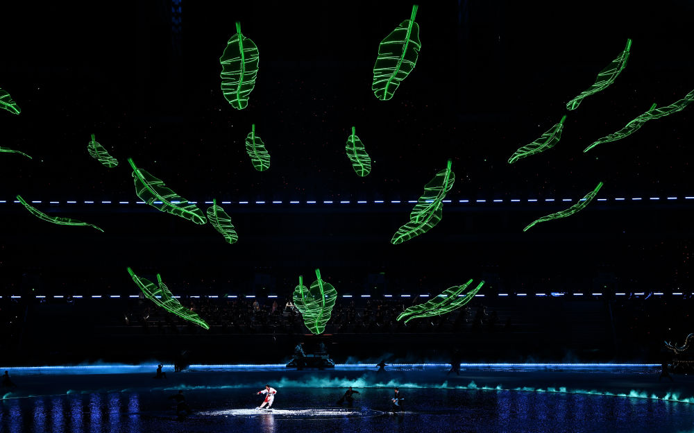 9日的羊城广州,广东奥体中心灯光璀璨,宛如飞扬的缎带。场内,“同心圆”水舞台波光粼粼,倒映万家灯火。粤港澳大湾区面水而生、因水而兴——这是一场以“水”为脉络的全运会开幕式。