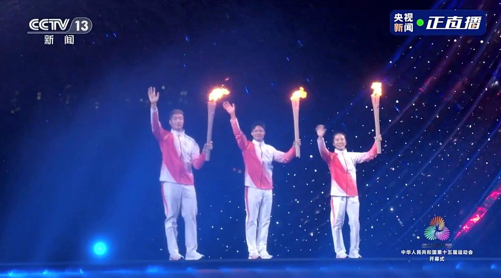共同点燃十五运会主火炬